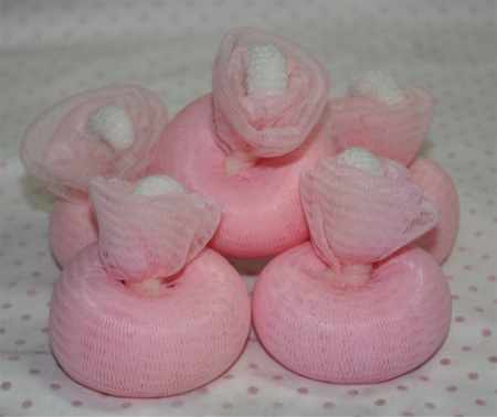 Wonderful little organza soap bag with satin ribbons. Hang your soap in the shower, let it drip dry ... grab it and soap up, hang it back up! So neat! What to do with the little soap slivers when your bar is almost gone? Put them in the soap bag! So easy to use, feels good on your skin, too. And it's very pretty! You may need one for soap, another for shampoo, and one for your soap slivers :) |